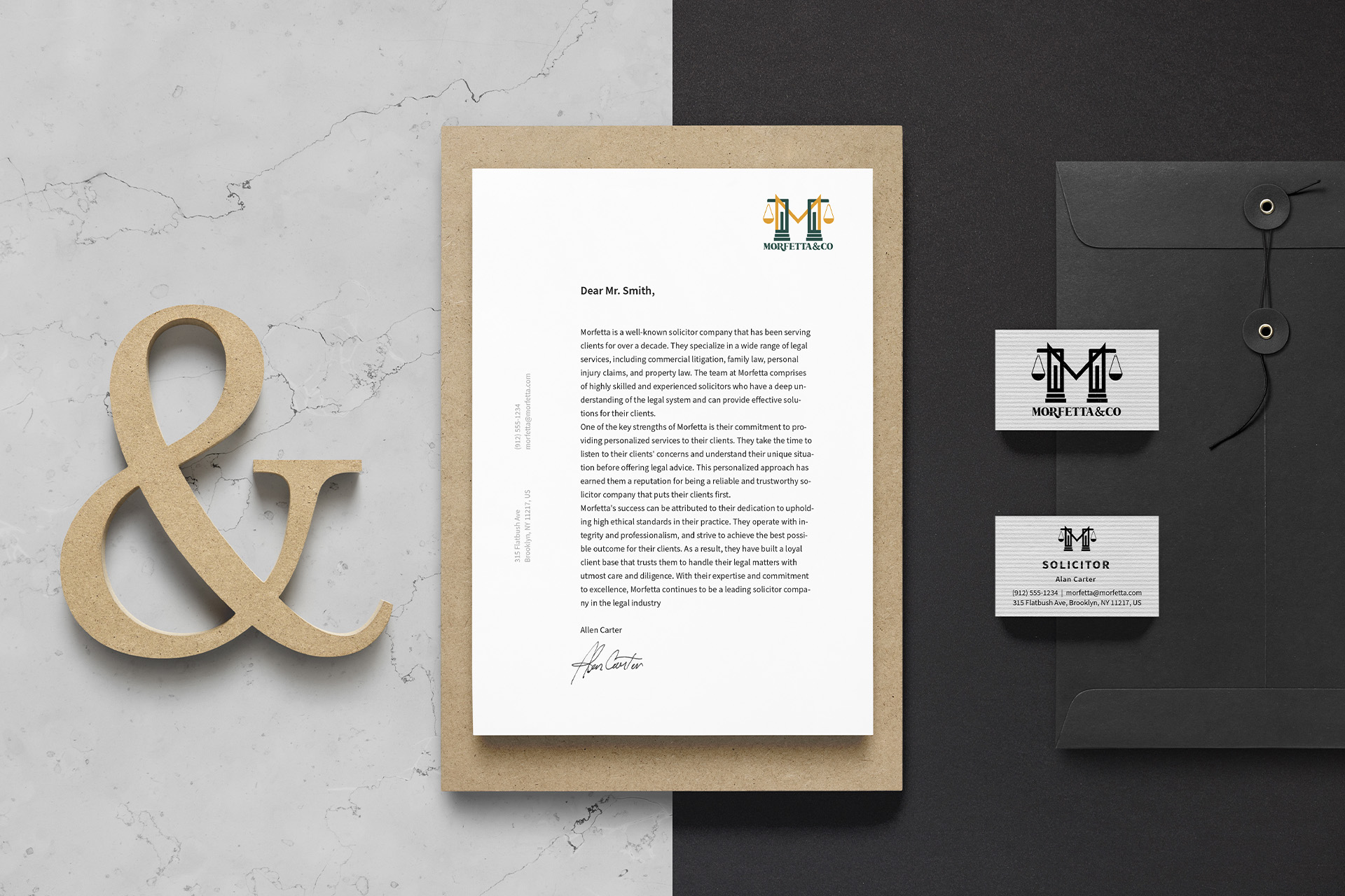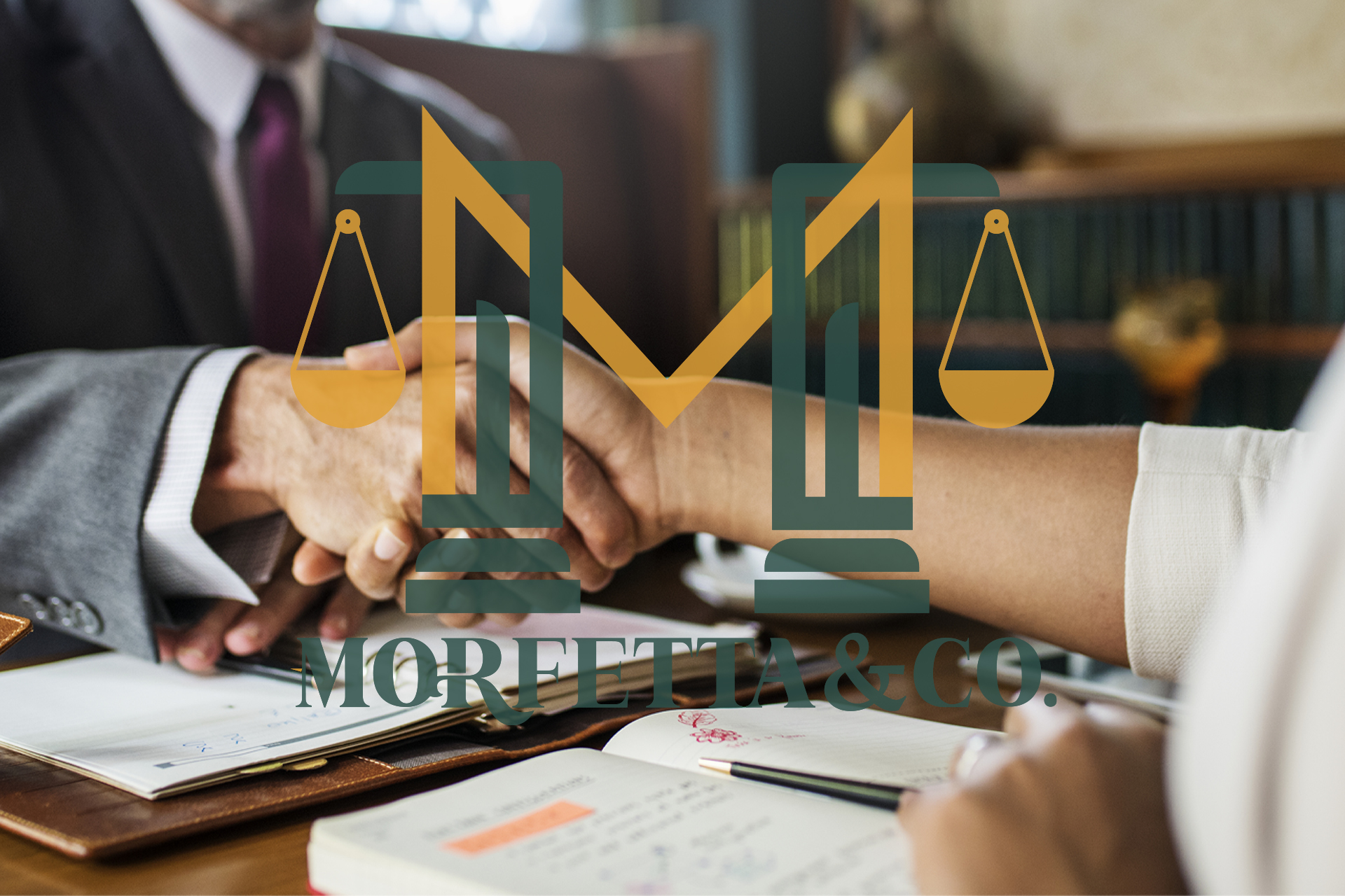 The logo for the Solicitor company Morfetta&Co utilizes a rich green tone to convey feelings of security and trustworthiness, while touches of yellow-gold evoke a sense of success and prosperity. The chosen font exudes timeless elegance, with refined embellishments and a distinctive twist on the letter R, infusing the design with creativity and originality.